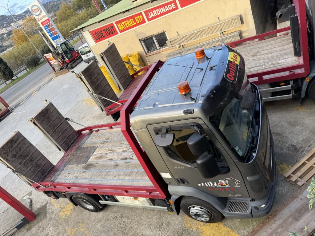 Idéal pour les travaux de terrassement, de débarras ou de déménagement, le camion-benne facilite le transport et l’évacuation des matériaux. Une solution pratique et polyvalente pour vos travaux.